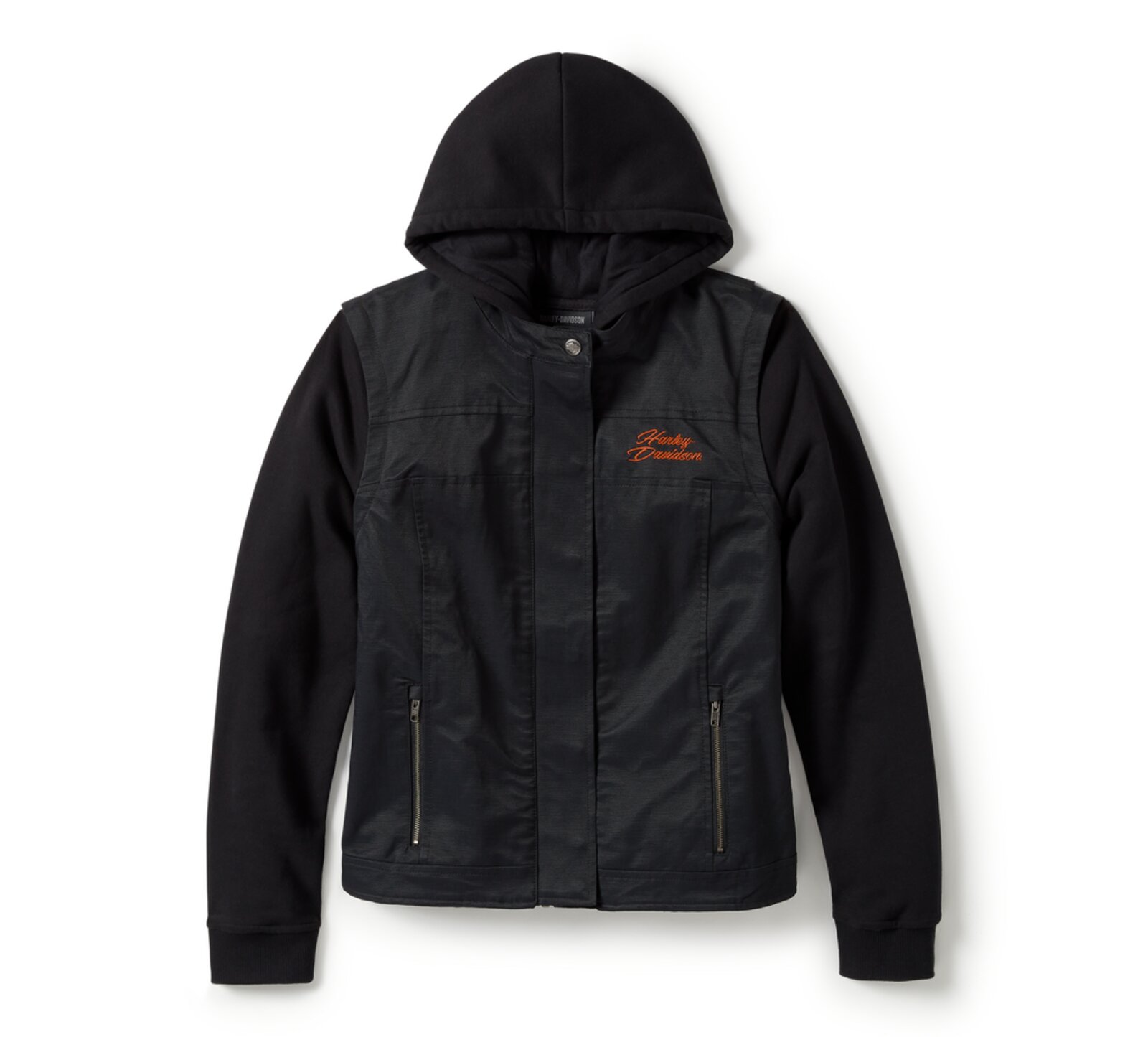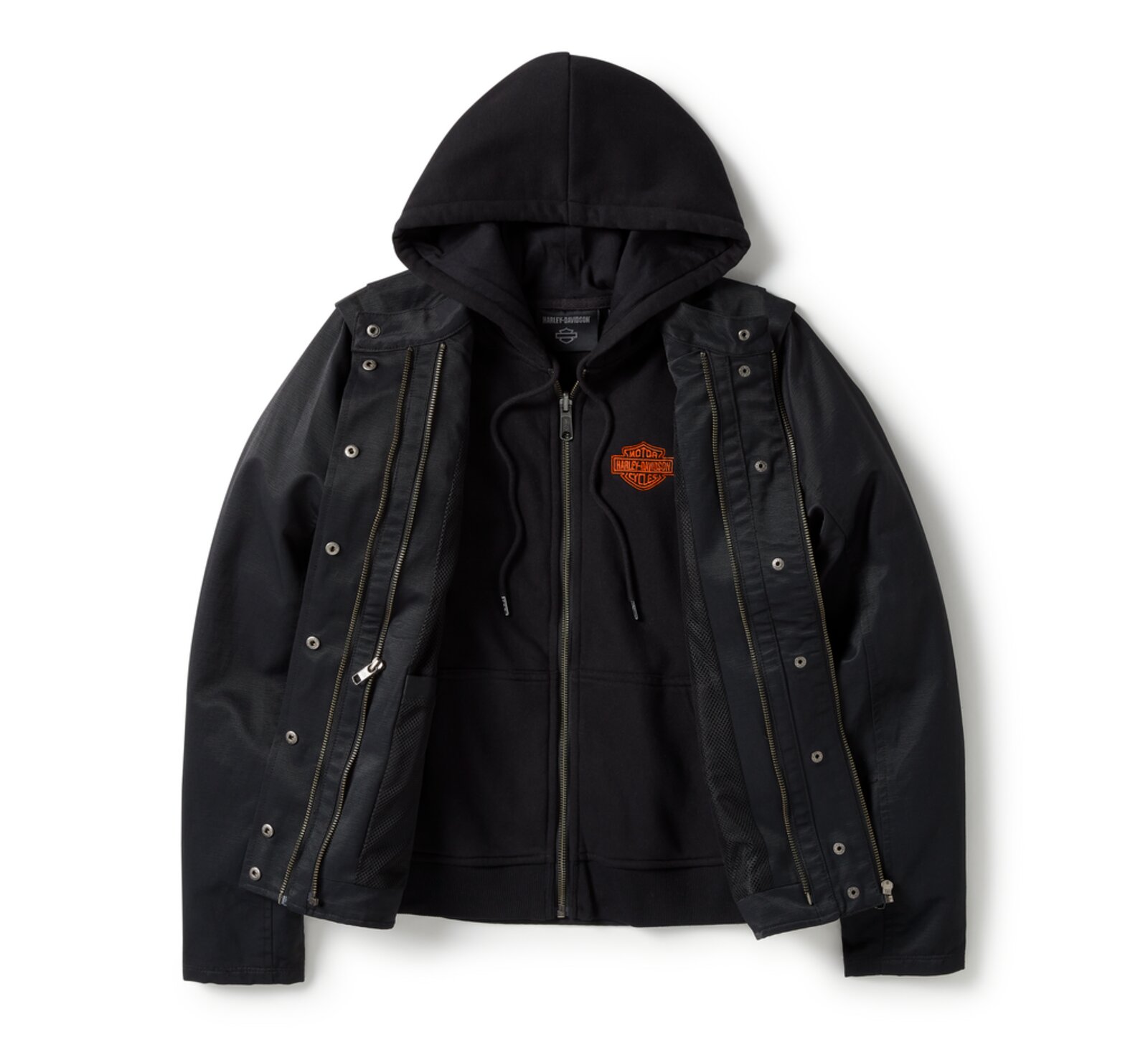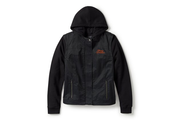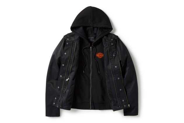 - materiály: 76 % bavlna, 24 % nylon.100% polyesterová síťovaná podšívka (bunda). 60% bavlna, 40% polyester fleece střední hmotnosti (mikina s kapucí)