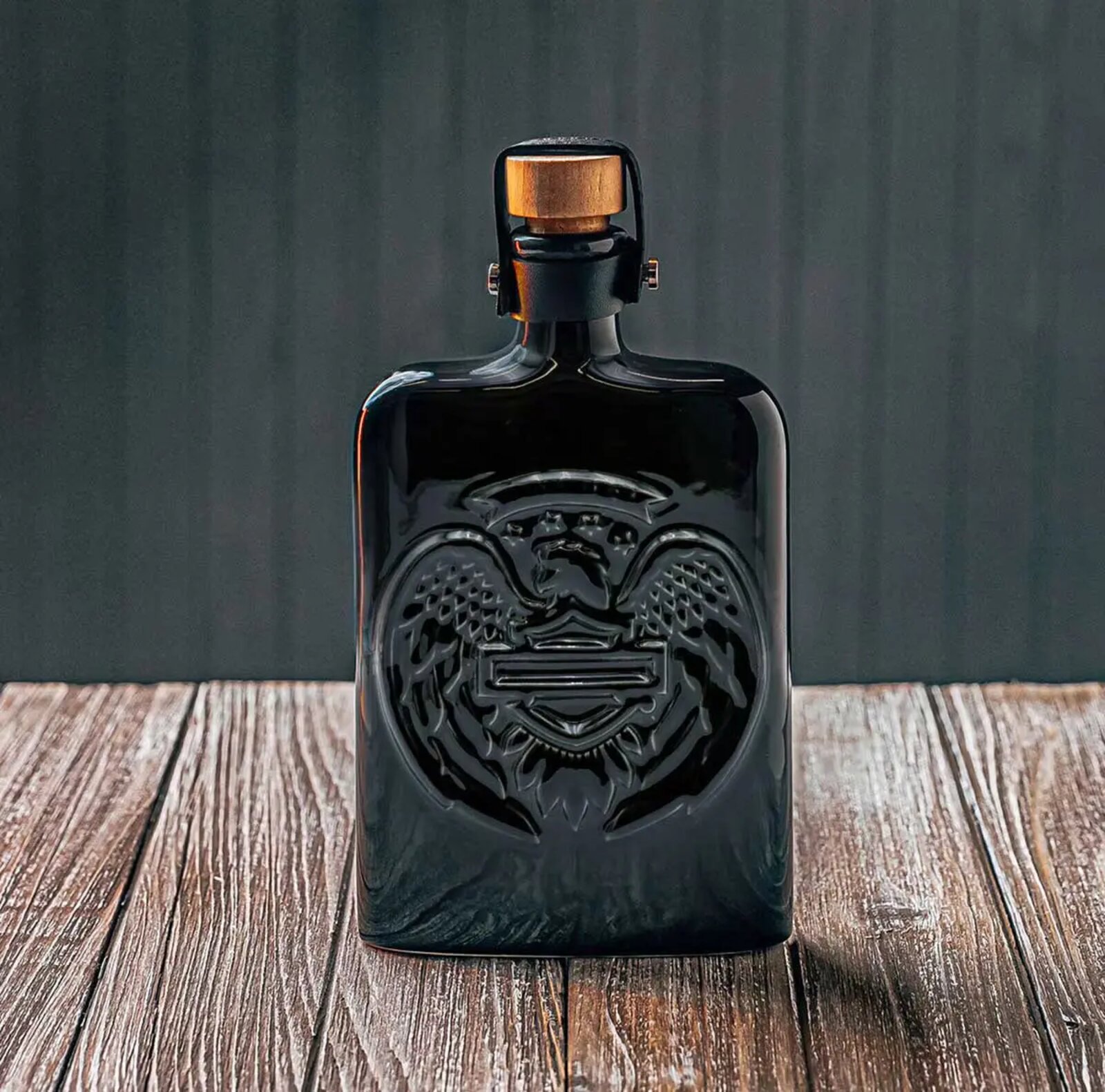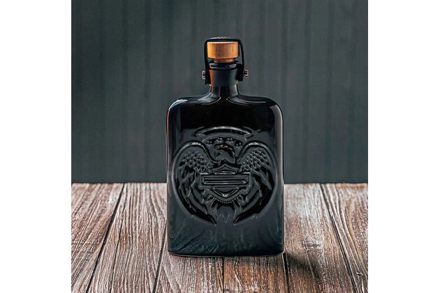 - velmi zajímavá keramická láhev o objemu 420 ml s vyraženým nápisem Open Bar & Shield Eagle.
