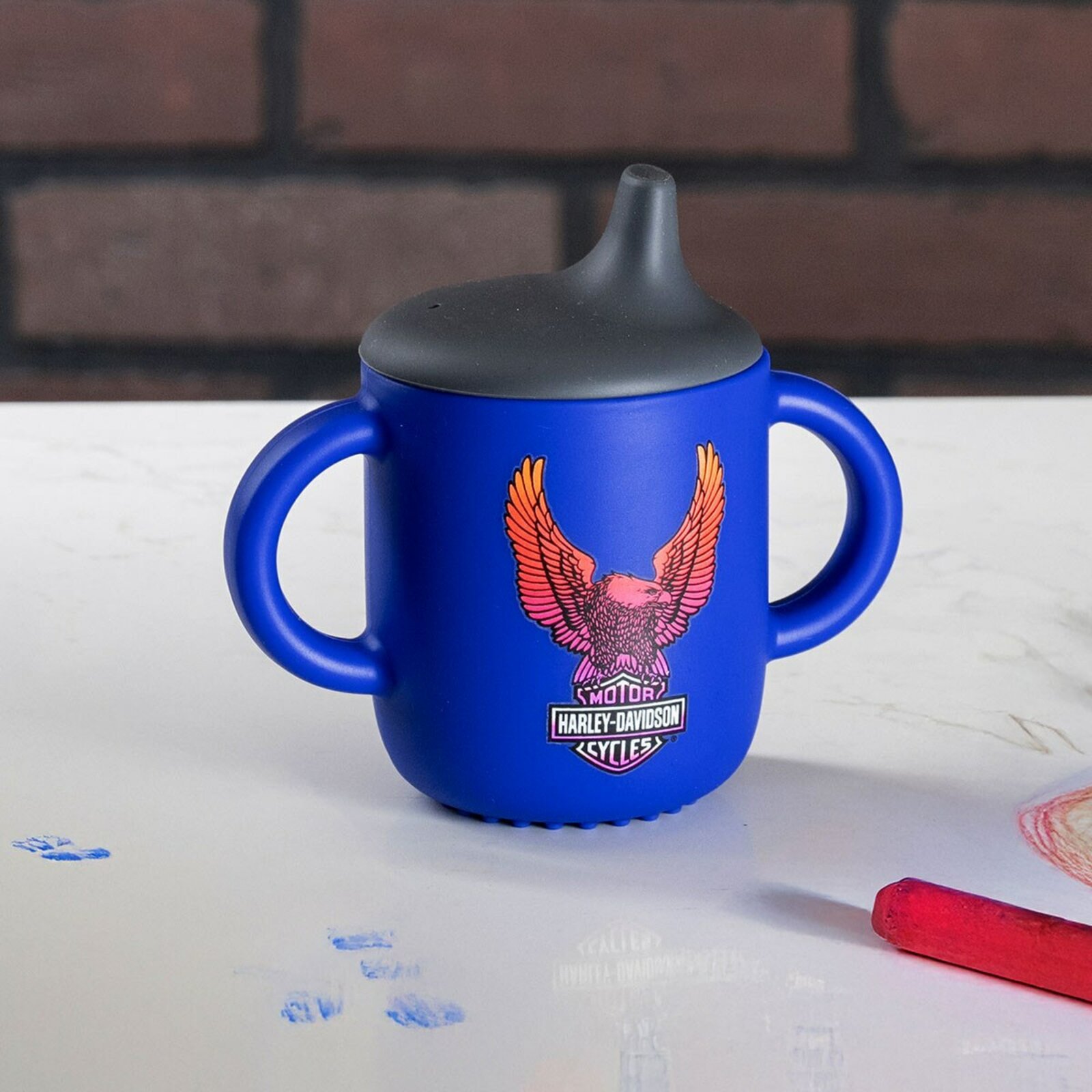 - silikonový hrnek na pití o objemu 180 ml s víčkem a rukojetí